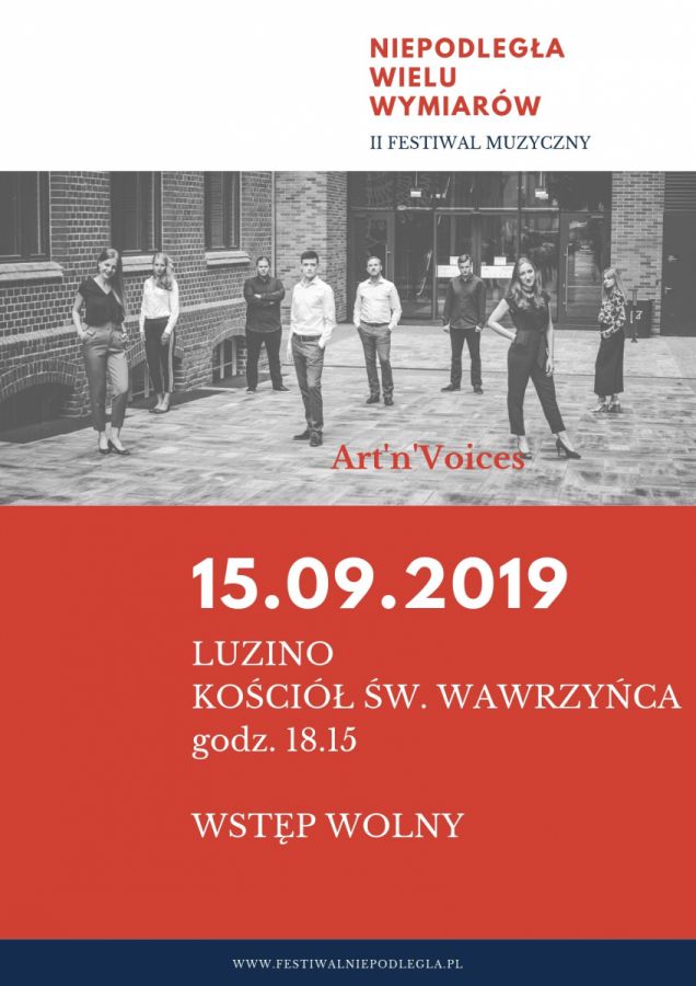 Serdecznie zapraszamy do Kościoła pw. św. Wawrzyńca w Luzinie na koncert w ramach II Festiwalu Muzycznego Niepodległa Wielu Wymiarów. Wykonawcą koncertu będzie jeden z najbardziej utytułowanych zespołów wokalnych w Polsce – Zespół Wokalny Art’n’Voices z Wejherowa. Świątynię wypełnią dźwięki kompozycji sakralnych, utworów kompozytorów współczesnych jak również dzieł w języku kaszubskim.