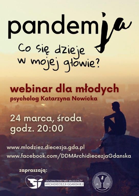 Z myślą o młodych, którzy borykają się z emocjonalnymi skutkami pandemii, ale też i o rodzicach chcących pomóc swoim dorastającym, pogrążonym w kryzysie dzieciom, Duszpasterstwo Młodzieży Archidiecezji Gdańskiej we współpracy ze Stowarzyszeniem Psychologów Chrześcijańskich przygotowuje internetowe spotkanie zatytułowane „Pandemia – co się dzieje w mojej głowie?”. Doświadczony psycholog będzie próbował przekazać młodym słuchaczom, jak mają odnaleźć się w tej trudnej sytuacji. Początek w najbliższą środę (24 marca), o godz. 20.00 – szczegóły na stronie www.mlodziez.diecezja.gda.pl